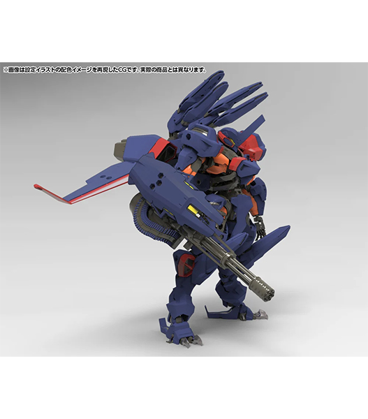 より汎用性を高めるべく一新されたマッシブな外装パーツ、そして背部には戦場へ高速展開する為の大型フライトモジュール、さらに大型の高初速多砲身機関砲をも備えた全身大ボリュームのヘキサギアです!フライトモジュールは単独で大型の対地攻撃ドローンとしても使用可能など遊びの面でもボリューム満点、是非お楽しみ下さい!