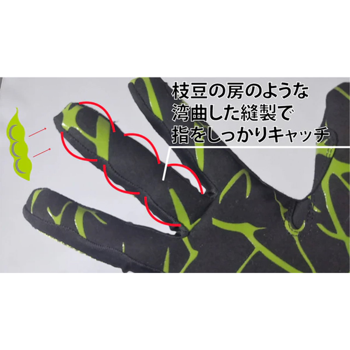 ■ 独自に開発した「枝豆縫製」により、間節に沿って指一本一本をキャッチ。 吸い付くようなフィット感が実現。 ■ 指、掌が自然と握りやすく仕上げられた、3D立体縫製。 ■ 人差し指と中指の先には縫い目がなく、爪の中に縫い目が当たらない、フリーフィンガー縫製。 ■ 夜間の視認性を向上させる反射板付き。