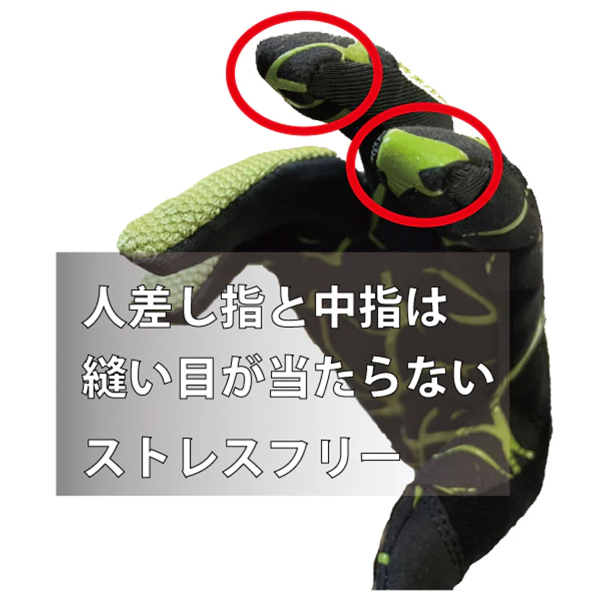 ■ 独自に開発した「枝豆縫製」により、間節に沿って指一本一本をキャッチ。 吸い付くようなフィット感が実現。 ■ 指、掌が自然と握りやすく仕上げられた、3D立体縫製。 ■ 人差し指と中指の先には縫い目がなく、爪の中に縫い目が当たらない、フリーフィンガー縫製。 ■ 夜間の視認性を向上させる反射板付き。