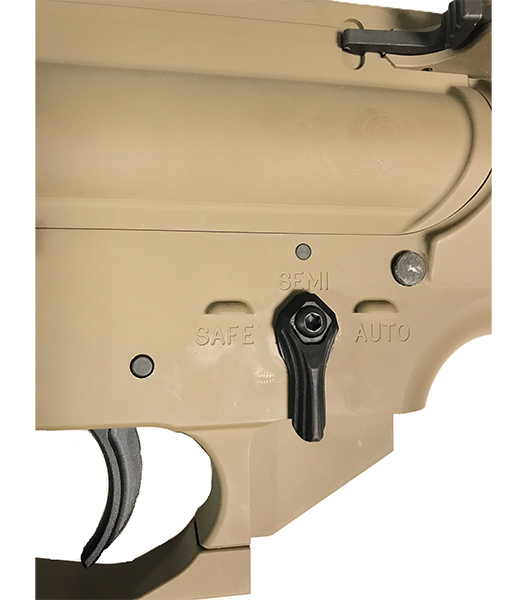 主要な外装パーツはアルミCNC製で、KACタイプ QDCフラッシュハイダー、ディンプルアウターバレル、モジュラーセレクター、アンビチャージングハンドルなどのパーツを装備。一部スチールパーツはQPQ処理も施されています。
