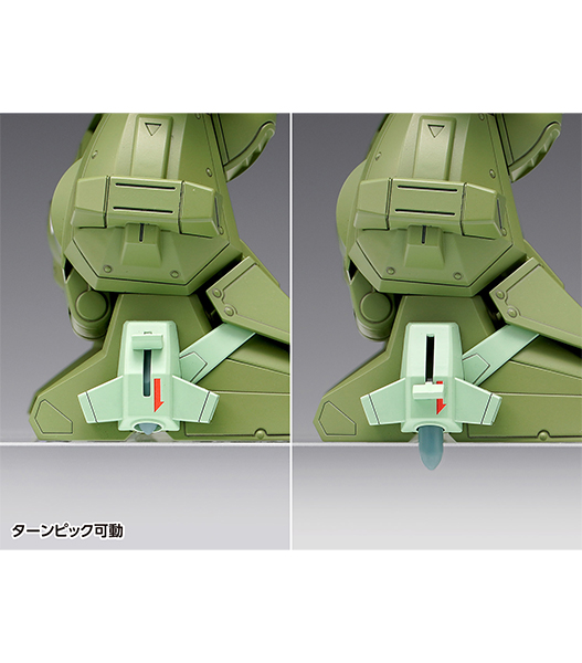 ターボカスタムの特徴であるローラーダッシュ用ブースターノズル展開可能、7連ミサイルポッド、2連ロケットランチャー、ガトリングガン、ヘビィマシンガンが付属します。