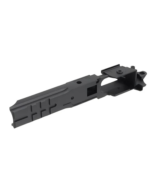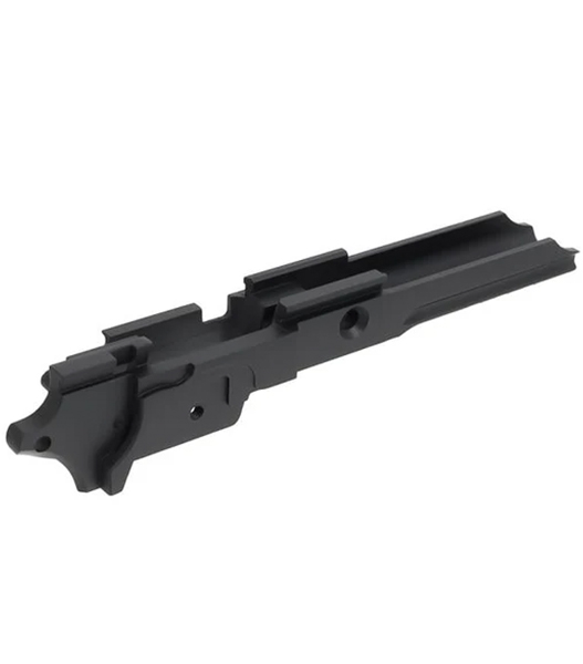 アルミダイキャスト製法による、軽量で高精度なロアフレームです。アンダーレイルはロアフレーム一体型のスリムなスタイルを採用。前面のカッティングがタクティカル感を演出します!重量は純正の155gに対して60gと、約60%も軽量化! 大幅な軽量化によりサイティングスピードがアップします!