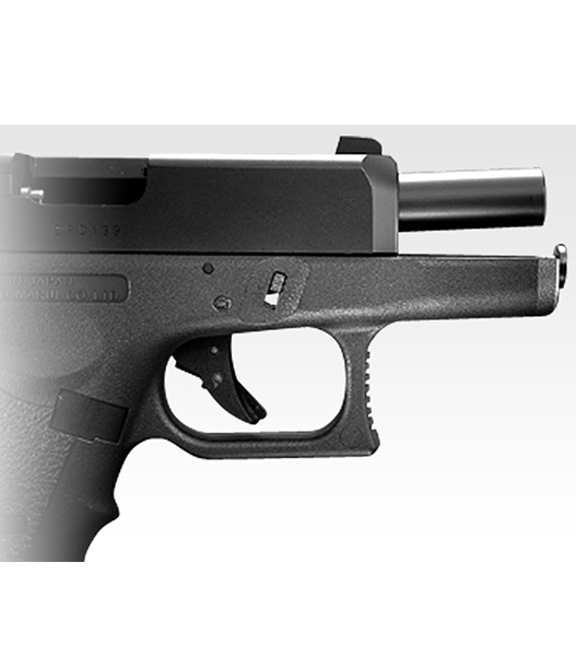 グロックシリーズ最小の9mmピストル、グロック26。想像をはるかにこえるコンパクトさゆえ、ガスブローバックでのモデルアップには不利となる条件がそろっています。しかし東京マルイでは、ホンモノ同様にリアルなティルトバレルロック機構を再現しながらの製品化に成功。