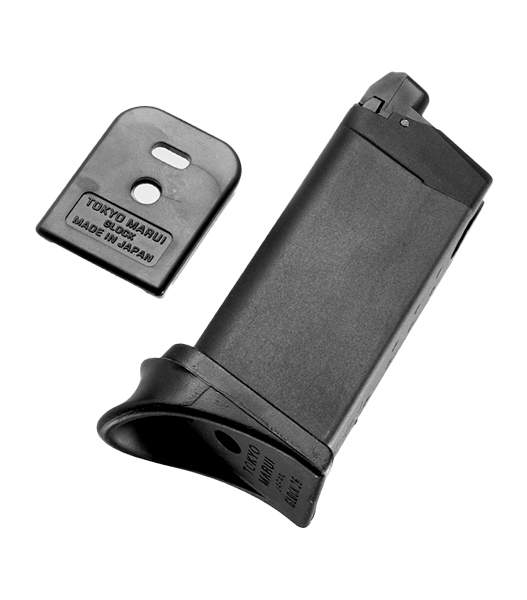 小型ながら装弾数15発を実現。フィンガーレスト付きのマガジンバンパーによって、グリップ時の安定感を確保しています。フィンガーレスト付きのマガジンバンパーは、付属のフラットマグプレートに交換可能です。