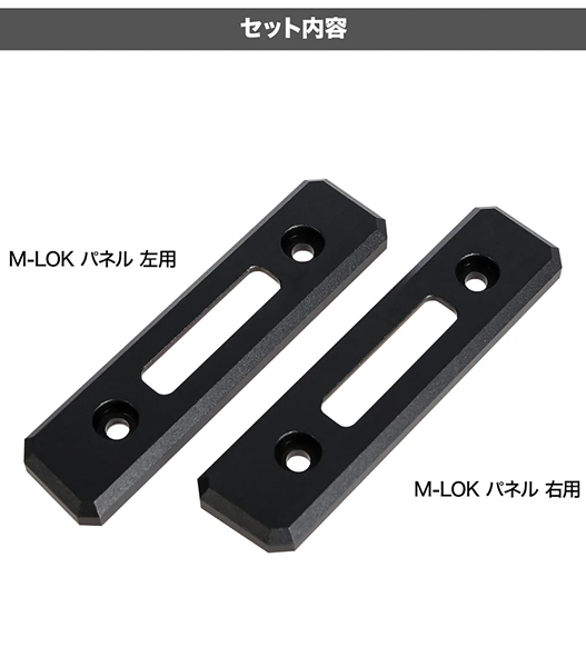 KRYTAC製電動KRISS VECTORとガスブローバックKRISS VECTORの両方に対応した M-LOKサイドパネルです。ピカティニー規格のアクセサリーしか取付けできなかった純正サイドマウントレイルを本製品に交換することで、M-LOK規格のアクセサリーを取付けることが可能になり、外装カスタムの幅を広げることが出来ます。また、パネル先端の角度をVECTORのボディに合わせているため、拡張性を高めつつも自然な外観にドレスアップ出来ます。
