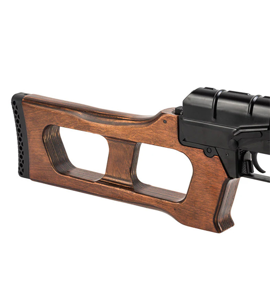 本製品VSS Vintorezは、バレルジャケットを兼ねた長大なサイレンサーが特徴的な独特のフォルムを忠実にトレース。