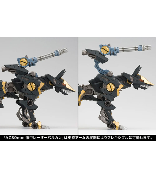 ・背部の「AZ30mm撤甲レーザーバルカン」は「マルチウェポンラック」の展開によりフレキシブルに可動します。
