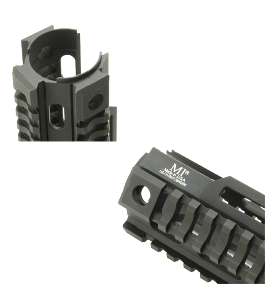 東京マルイ製次世代電動ガンMP5A4/A5に対応した、左右と下面にピカティニー規格レールを配置したハンドガードです。