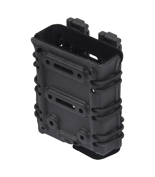 EmersonG-CODEタイプの7.62mmサイズ用マガジンポーチです。 全体に張り巡らされた伸縮性のバンジーコードによって、収納時にはしっかりと強固に保持、取り出す際には収納部が柔軟に展開し マガジンの素早いドローが可能になります。 材質は耐候性・軽量性に優れた樹脂で構成。MOLLEタイプアタッチメントが付属しています。