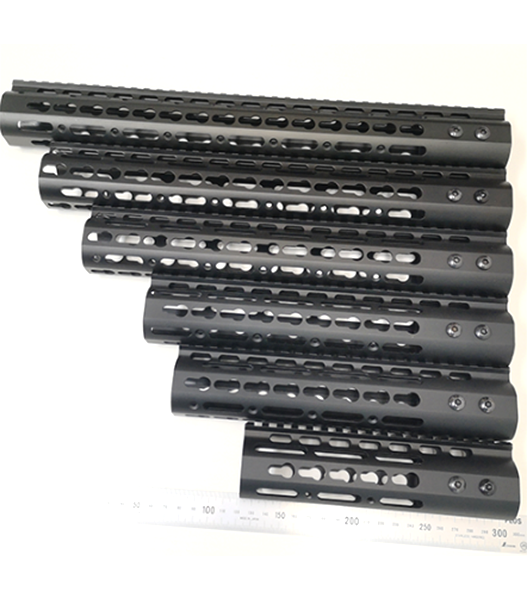 アルミ製の軽量で細身のM4系ハンドガード。握りこみやすく、突起の少ないデザインで人気です。