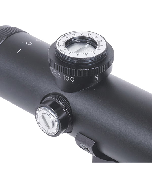 ゼロイン用のエベレーション(上下)、ウィンデージ(左右)の調整ダイアルは、
