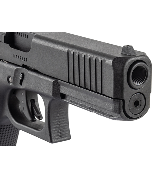 GLOCK G17 Gen5 MOS(t) CO2GBB は11mm正ネジ スレッデッドアウターバレル標準装備でトレーサー対応(※ t = Threaded Barrel )。※B-MINI 2 マズルフラッシュトレーサーの装着には、別途、11mm正ネジ-14mm逆ネジアダプターが必要です。