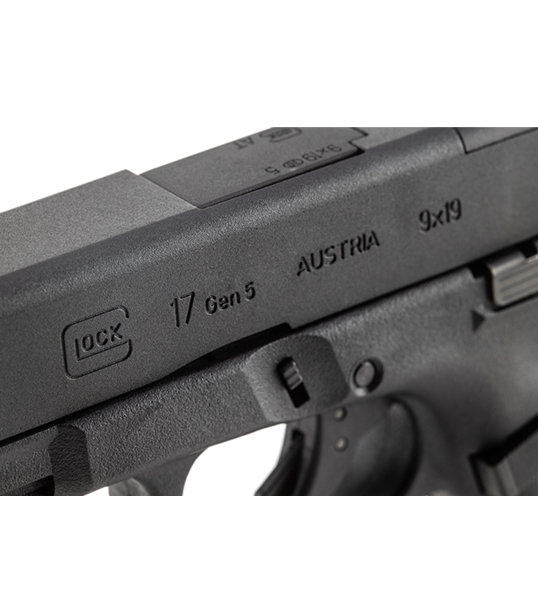 もっとも有名なポリマーフレームオート GLOCK G17 の最新版 Generation.5 をモデルアップしたCO2ガスガン GLOCK G17 Gen5 MOS CO2GBB 。BATON airsoft は GLOCKトイガンの日本正規ライセンスを取得し、GLOCK監修によりリアルな外観とリアル刻印を再現。特徴的なスライドカットやグリップパターン等の外見のリアルさだけでなく、独自の内部構造とすることで、樹脂スライドながら MOS(モジュラー・オプティック・システム)までも実装している。4種類のMOSプレートが付属し各社ダットサイトに対応。