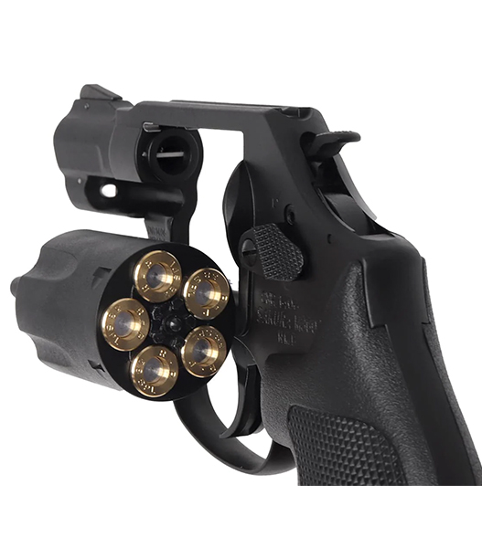 標準では.38splカートリッジが付属しますが、パイソン、M19などで使用されている.357Magカートリッジ(別売)も使用できます。