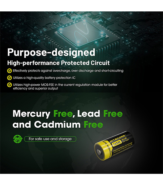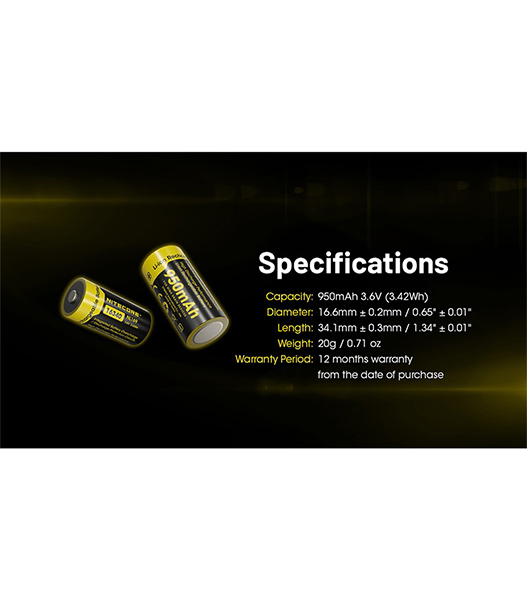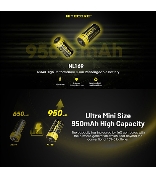 NITECORE(ナイトコア) NL169 950mAh 3.6V (3.42Wh) 16340 充電式 リチウムイオン電池 CR123Aサイズ 1本
