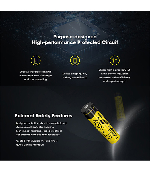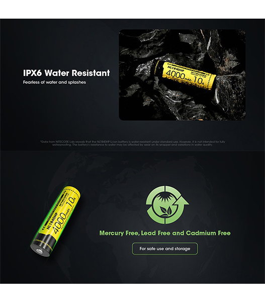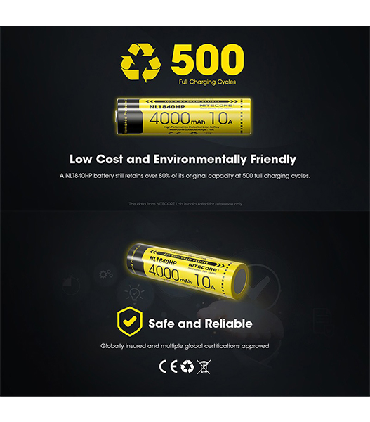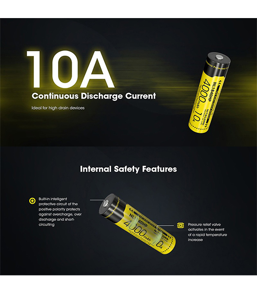 NITECORE(ナイトコア) NL1840HP 4000mAh 3.6V (14.4Wh) 18650 高出力 充電式 リチウムイオン電池 1本 ボタントップ