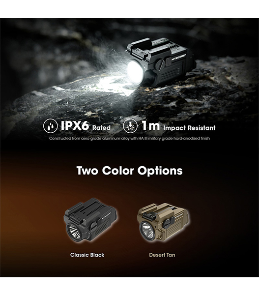 NITECORE(ナイトコア) NPL25 コンパクト ウェポンライト Black 最大900ルーメン/255m照射 充電式バッテリー内蔵