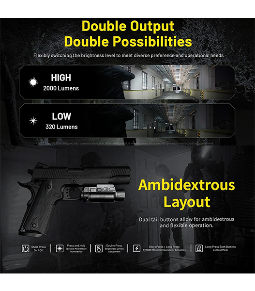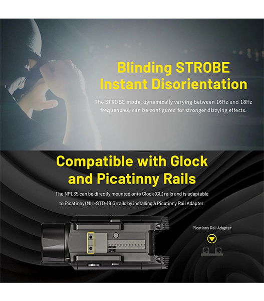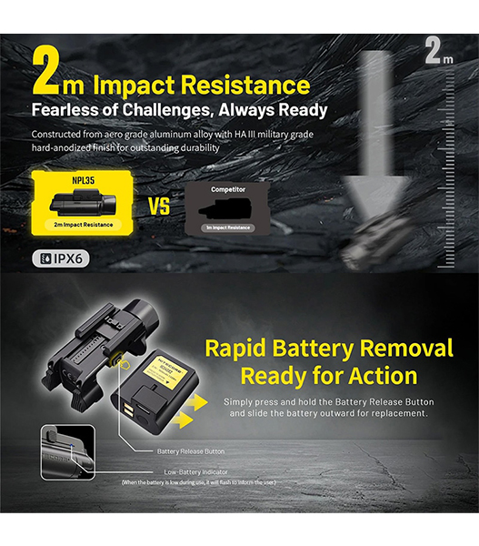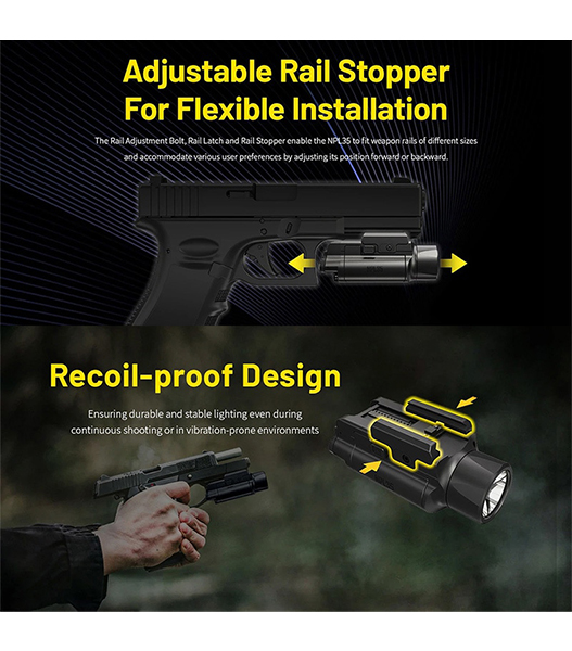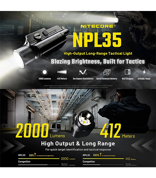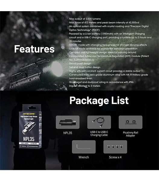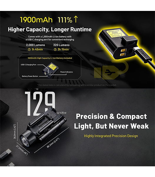 NITECORE(ナイトコア) NPL35 高出力 ロングレンジ ウェポンライト Black 最大2000ルーメン/412m照射 充電式バッテリー内蔵