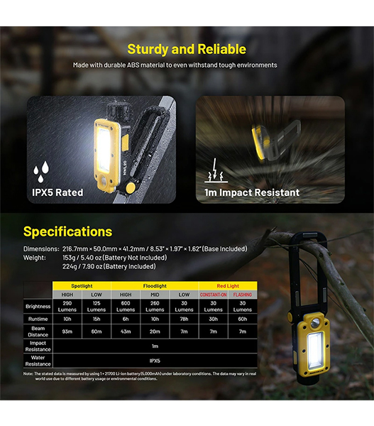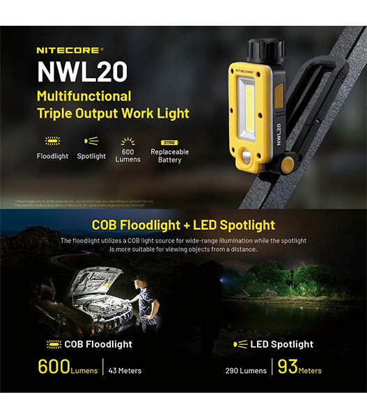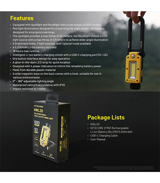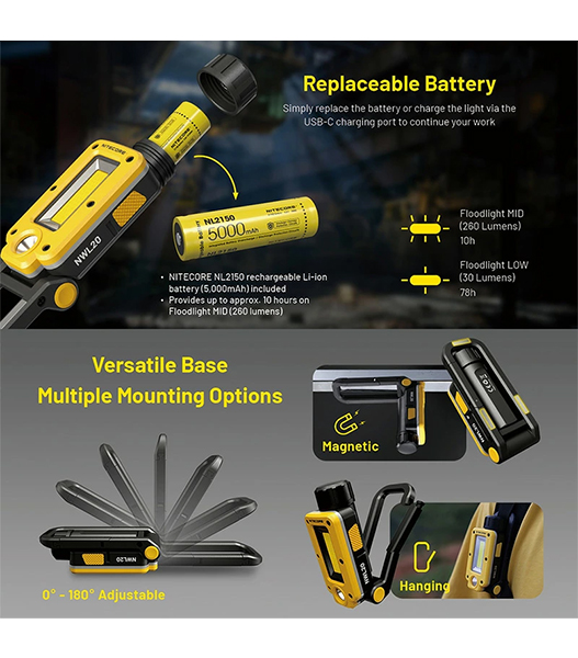 NITECORE(ナイトコア) NWL20 マルチファンクション ワークライト 最大600ルーメン/93m照射 Type-C 充電