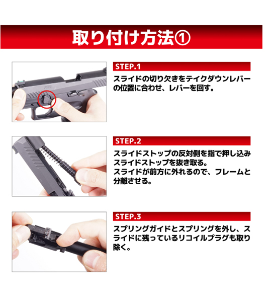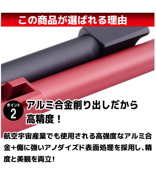 ショートリコイルキャンセル式の為、サイレンサーやトレーサー装着時の作動の安定性、命中精度の向上に貢献します。