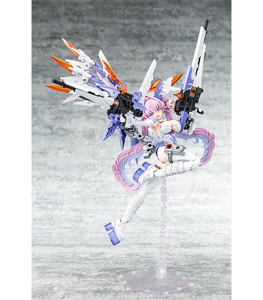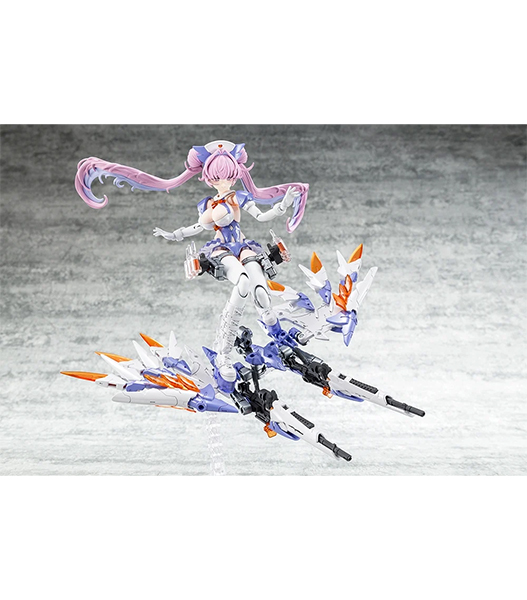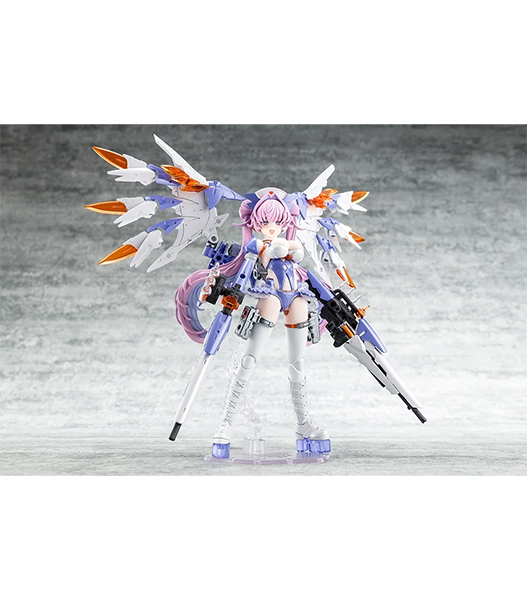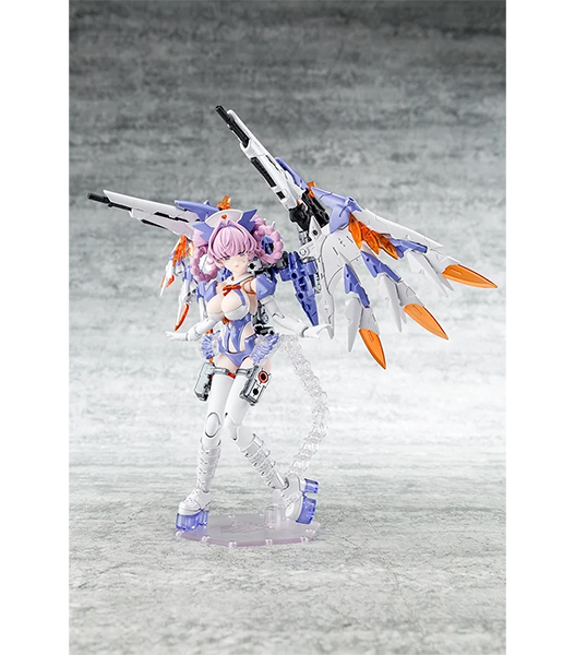 ・クリアーパーツをあしらった巨大なウイングやアンプル弾を発射する医療系ライフルなど勇ましくも看護をイメージしたパーツが満載。