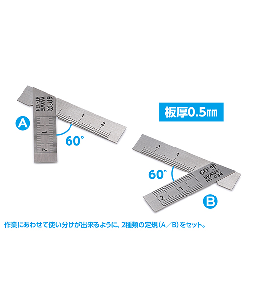 作業にあわせて使い分けが出来るように、2種類の定規(A/B)をセット。
