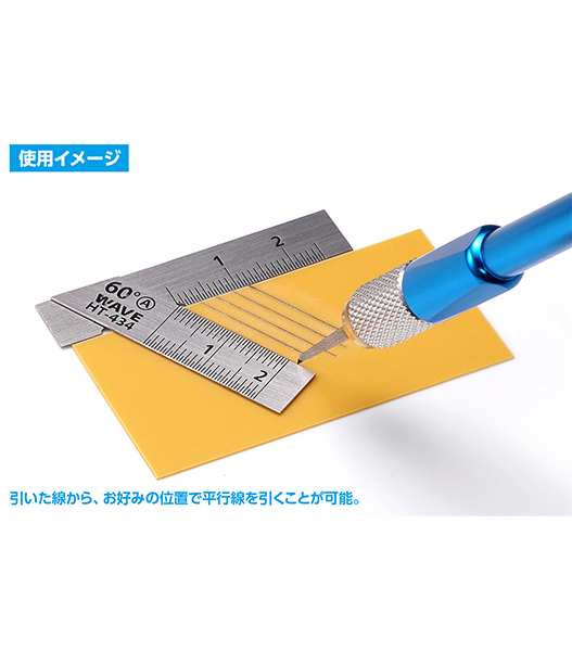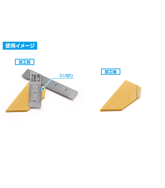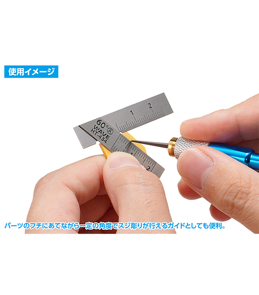 短く取り回しやすいため、パーツのフチにあてながら一定の角度でスジ彫りが行えるガイドとしても便利です。