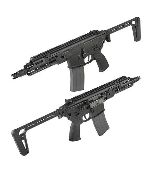 実銃のRSARは、約7.75インチという超短バレルを採用し、車載・室内戦・隠密行動など、素早い取り回しが求められる状況で高い機動力を発揮します。ショートストロークピストン方式を採用するMCXシリーズの設計思想を受け継ぎ、安定した作動と高い信頼性を実現している点も大きな特徴です。また、M-LOK 対応ハンドガード、モジュラー構造、サプレッサー適性など、現代的なタクティカルライフルとしての拡張性が充実しています。