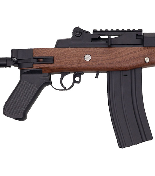 実銃は米軍M14ライフルを小型化した様なスタイルとなっており、従軍中にM14ライフルを装備していた民間人、M16ライフルなどの軍用銃が市民へ与える心理的な影響に配慮した警察・警備組織に好評を得たモデルです。