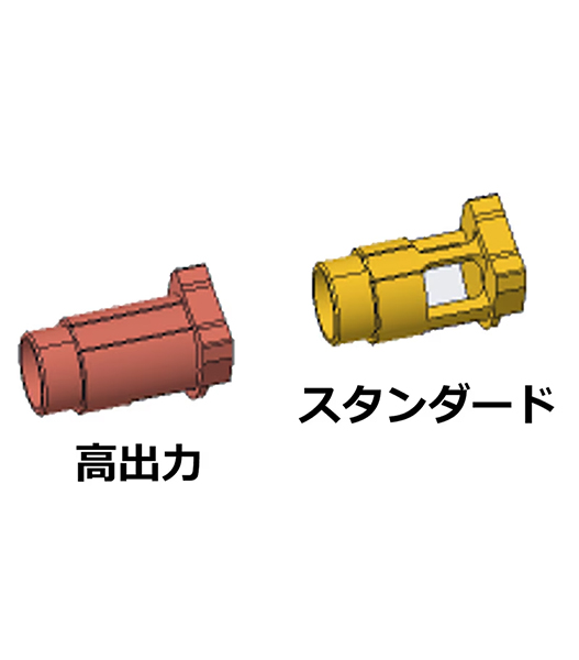用途に応じて使い分け可能な「スタンダード」「高出力」の2種類のフローバルブが付属します。