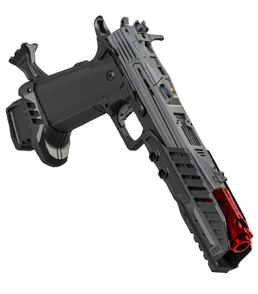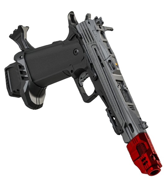さらに当社では、Hi-Capa用の新型「エクステンデッドレール ブラストシールド」も開発しています。本コンペンセイターと組み合わせることで、これまでにない独創的でアグレッシブ、かつ強い印象のルックスを演出できます。きっと気に入っていただけるはずです。もちろん本コンペンセイター単体での装着も可能で、SUPERLINEおよびFLATLINEスライドにも対応します。また、飛距離性能向上のためにインナーバレルを延長している場合でも、延長分をコンペンセイター内部に収めて外観をすっきり見せることができます。
