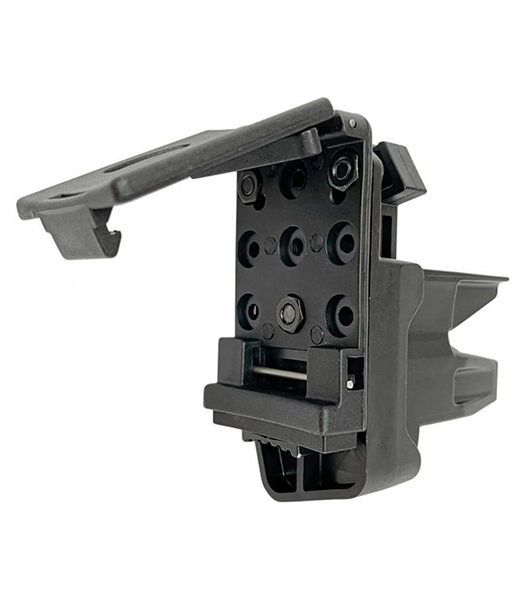 背面には角度調整機構も追加されており、CTMの各種アダプターと組み合わせることで、MOLLEやSafarilandシステムにも対応可能です。ネジ穴位置が共通のため、好みのスタイルに合わせて自由に組み合わせられます。