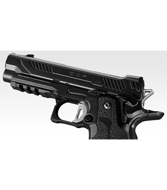 マイクロプロサイトをダイレクトに装着可能な4.3インチ用新型スライドや、握り心地を向上させた新型グリップは、これまでの直線的なハイキャパのデザインから一新。近年のトレンドのひとつとなっているSF風のデザインコンセプトを取り入れながら、携帯性や取りまわしやすさ、各部の操作性を追求しています。
