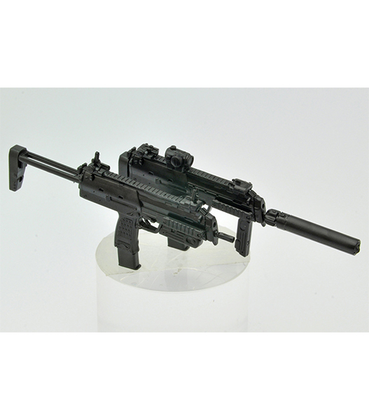 拳銃弾とライフル弾の中間サイズという特殊な4.6mm弾を使用するドイツ製PDW(個人防御火器)のMP7。