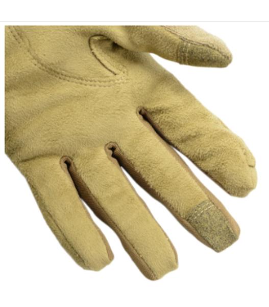 手のひらはトリガーを引く感覚を損なうことなく、長期間の使用にも耐える丈夫さを備えた合成皮革を採用。また親指と中指はスマートホンなどのタッチパネルに対応。