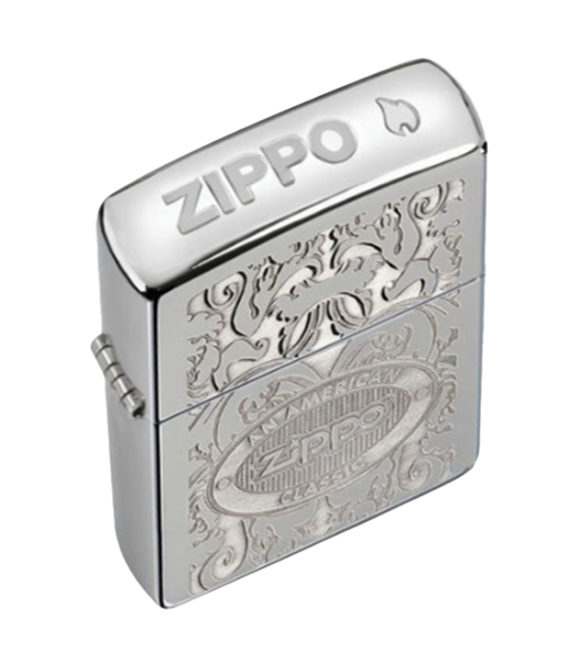 ハイポリッシュをベースにZIPPOのロゴを上蓋と前面にレーザー彫刻したZIPPO。 ※製造年表示や刻印等は入荷ロット・個体により異なりますため、画像と同一でない場合がございます。