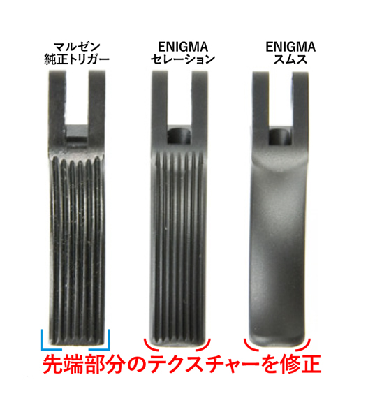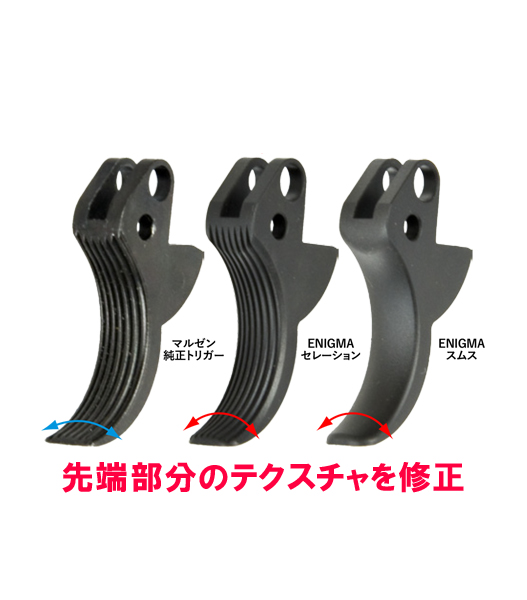 マルゼン純正トリガーよりも、さらにふっくらとした弧を描くことで実銃と同様の外観をリアルに再現