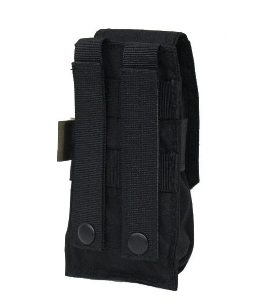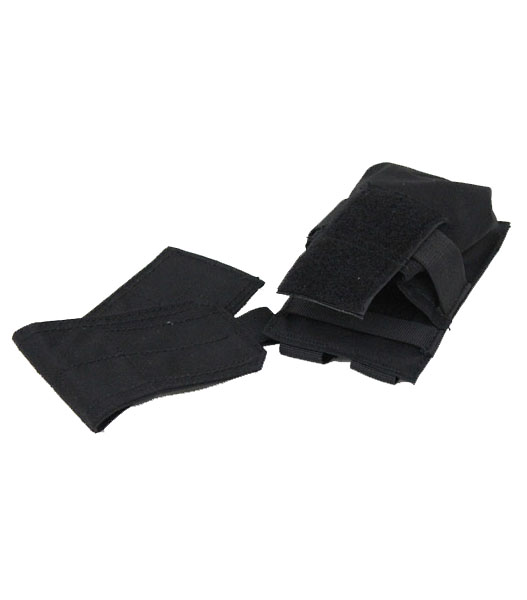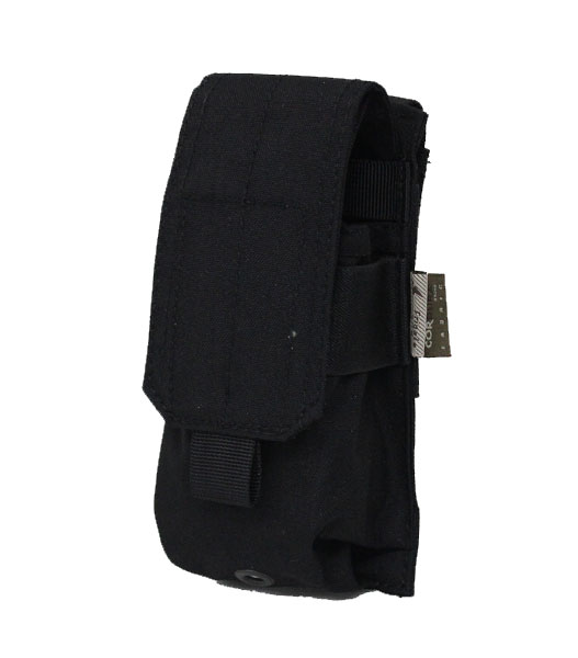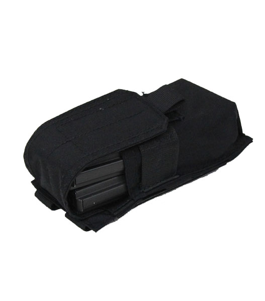 マガジンが2本入ります。上ふたの高さをベロクロテープで調節できるため、M16より長めのマガジンも収納可能です。ポーチのサイドにゴムがありマガジンを固定するため、ふたを外しての使用もできます。コーデュラナイロン製。