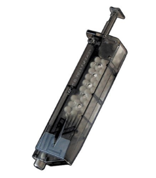 スケルトンボディで残弾の確認も容易にでき、プッシュロッドを本体に収納すればマガジンポーチにすっぽりおさまるM92Fマガジンサイズです。