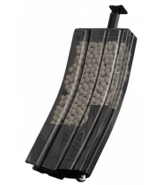 本体内に約470発のBB弾を収納でき、手動でロッドを何回か押すだけでBB弾をマガジンに装填できます。