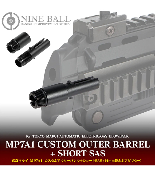 LAYLAX NINE BALL MP7A1 カスタムアウターパレルSAS+M14逆アダプター(ショート)(東京マルイ AEG/GBB専用)
