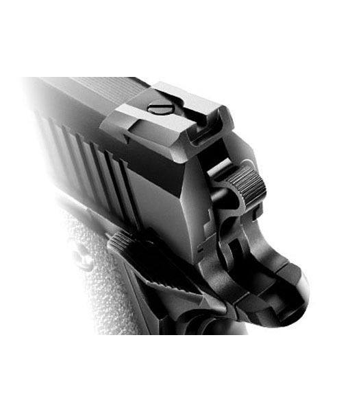 砂や埃の侵入を防ぐフルダストカバー・シャーシにはピカティニー規格(20mm幅)のアンダーレイルを備え、フラッシュライトなどが装着可能です。・無駄のないスタイル:服や装備品に引っかかりにくいダブルホール・リングハンマーや、片側のみに設置したタクティカル・シングルサムセフティ、ショートテール・グリップセフティなど、コンパクトなボディに最低限かつ効果的なパーツを採用しています。