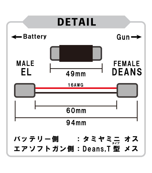 ・電動ガン側のコネクターとバッテリー側のコネクターが異なるときに便利な変換コネクターです。