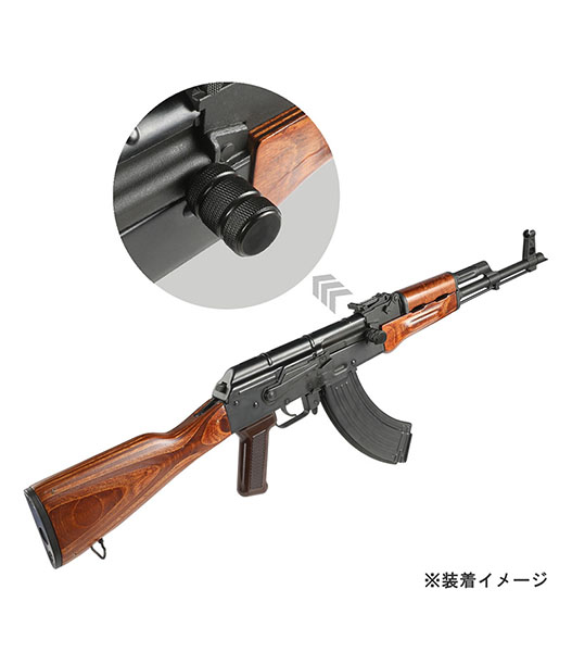 AK AEG/GBB両対応のチャージングハンドルエクステンションです。 指掛けがしやすい円筒形でチェッカリングが刻まれているため、オリジナルパーツと比較して扱いやすく手を傷めずに操作することが可能です。 装着はハンドルに被せサイドの六角ネジで留めることで容易に組み込みができます。 材質は剛性に優れたスチールを採用しています。