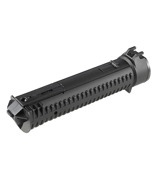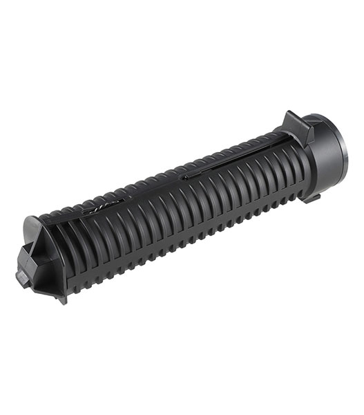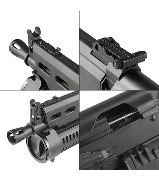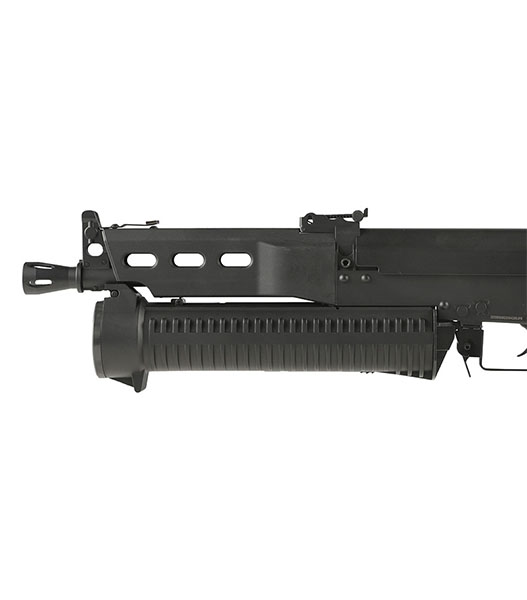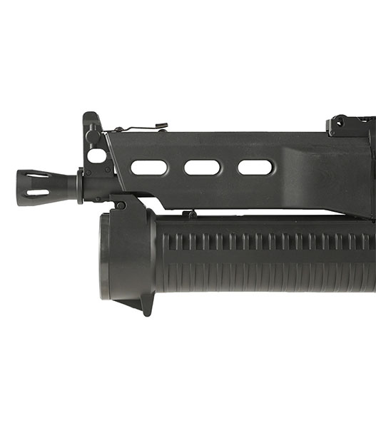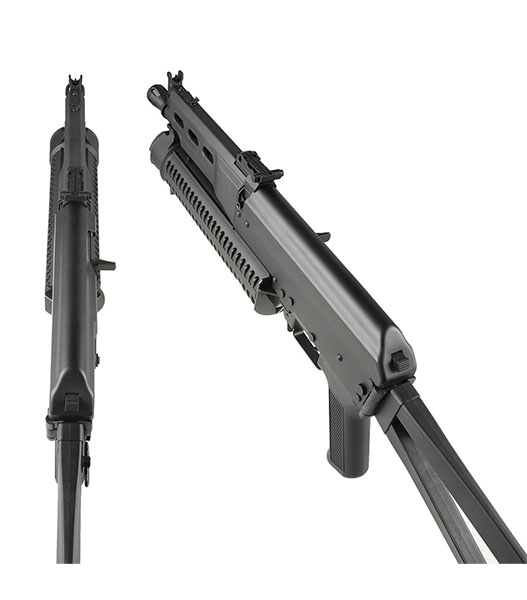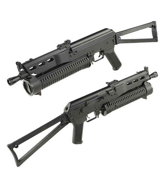 PP-19 Bizonは1990年代初頭ロシア内務省による要請により開発された9mm弾薬仕様のサブマシンガンです。 対テロ部隊やLE部隊など、近接戦闘における即応や正確な射撃が可能となることを想定とされました。 BizonはAKS-74をベースとし、約60%のパーツの互換性を持つことが特徴で、特にバレルに沿って装着されるヘリカルフィードマガジンが個性的となっています。