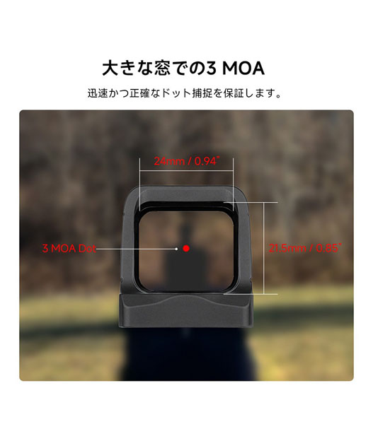 ・3MOAのドットはきれいで見つけやすく、迅速かつ正確な射撃をサポート。