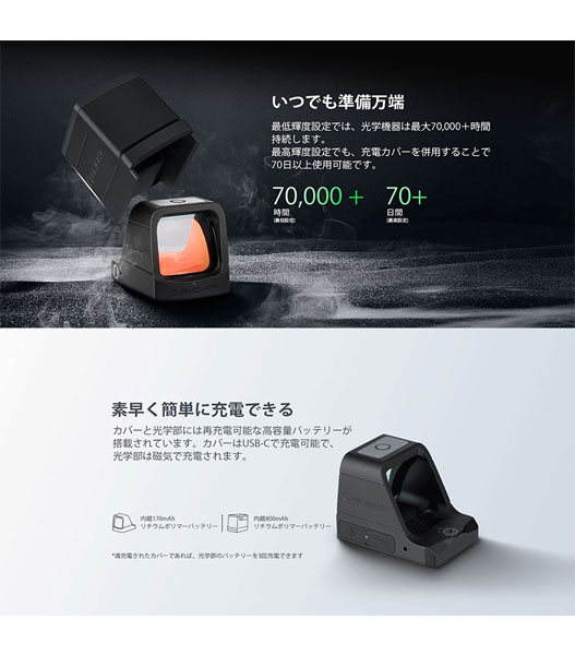 ・ドットサイト:内蔵170mAhリチウムポリマー電池