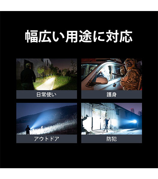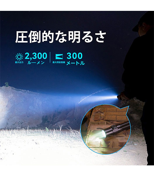 【2300ルーメン高輝度/300メートル射程】Warrior 3Sは高性能なLEDを搭載し、2300ルーメンまでの高輝度を備え、300メートルのホワイトビームを出力します。高視認性の光束は防災、作業、旅行、捜索などを対応できます。【光センサー付き/ダブルスイッチ】ヘッドには光センサーが埋め込まれており、ダウンシフトをブロックし、アクティブセーフティ保護を提供し、製品使用の安全性をさらに向上させます。サイドスイッチとテールスイッチで両方の操作が可能で、片手で輝度変更や間欠点灯を切り替えることができ、利便性が高いです。