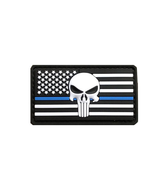 PVCパッチ Blue Line American flag Punisher skull 8×4.5cm white
