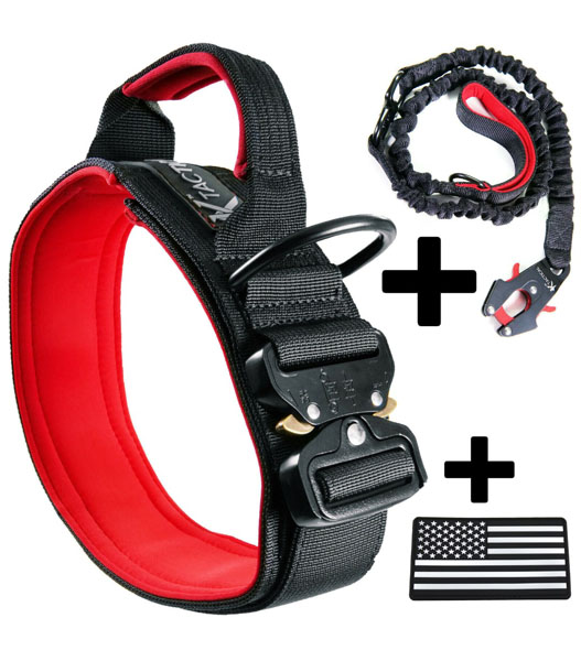 Ktactical Tactical Dog Collar K9 Rugged Heavy Duty Handle Black + Red Ktactical Kit Patch